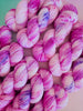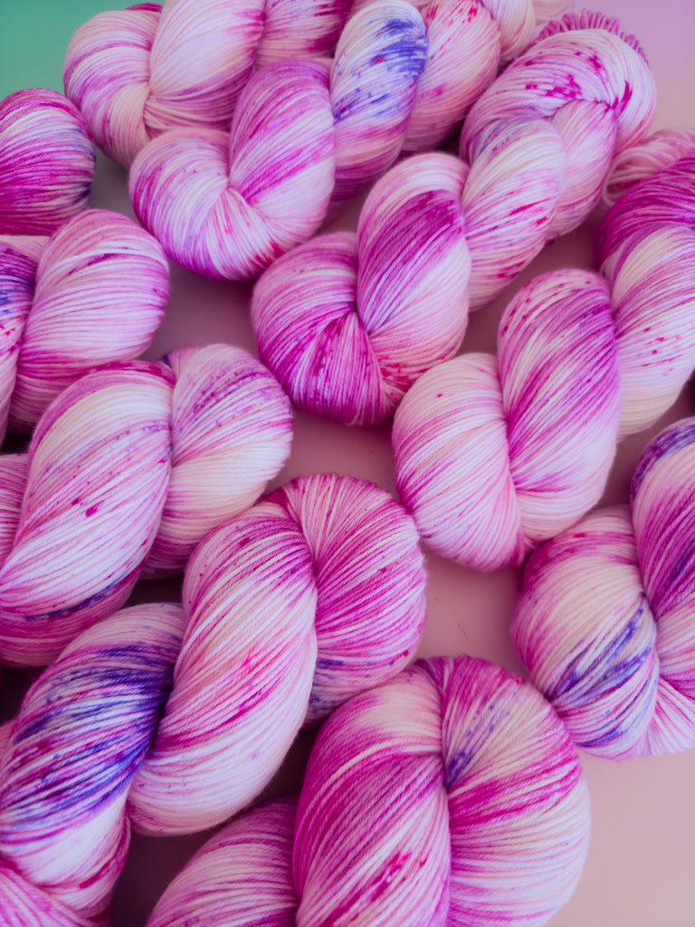 Inspired by Cherry Blossom’s love of beauty and gentleness, this colourway is made up of petal pinks, deeper rosy tones, and soft speckles. Delicate and romantic, it feels like springtime captured in yarn