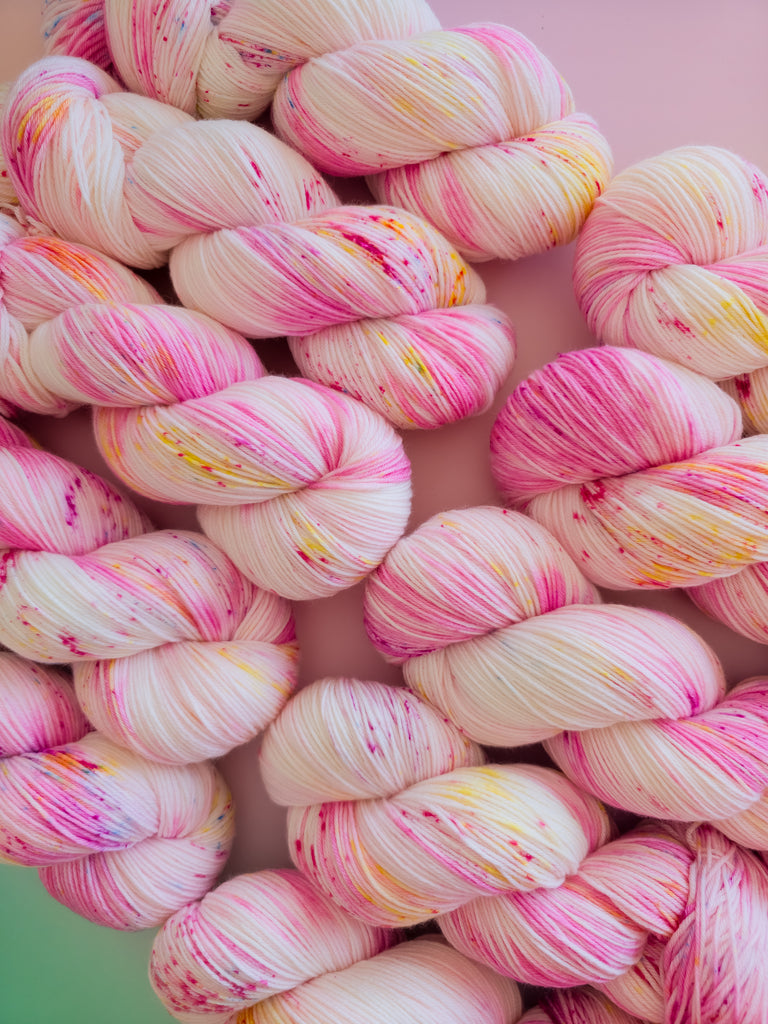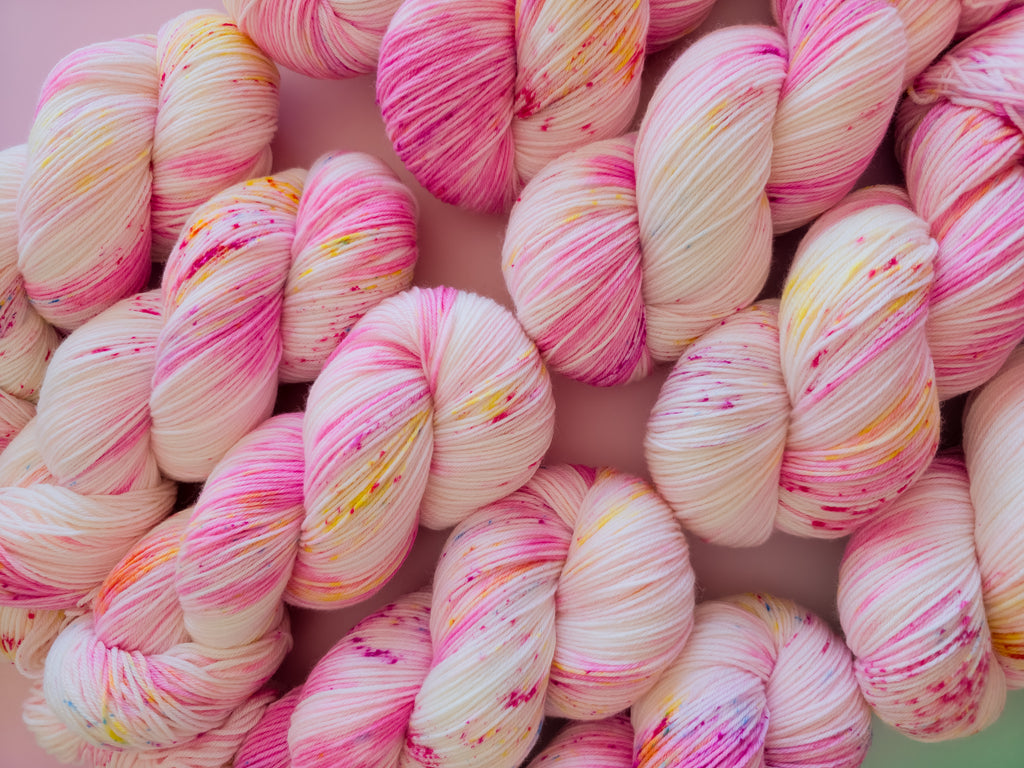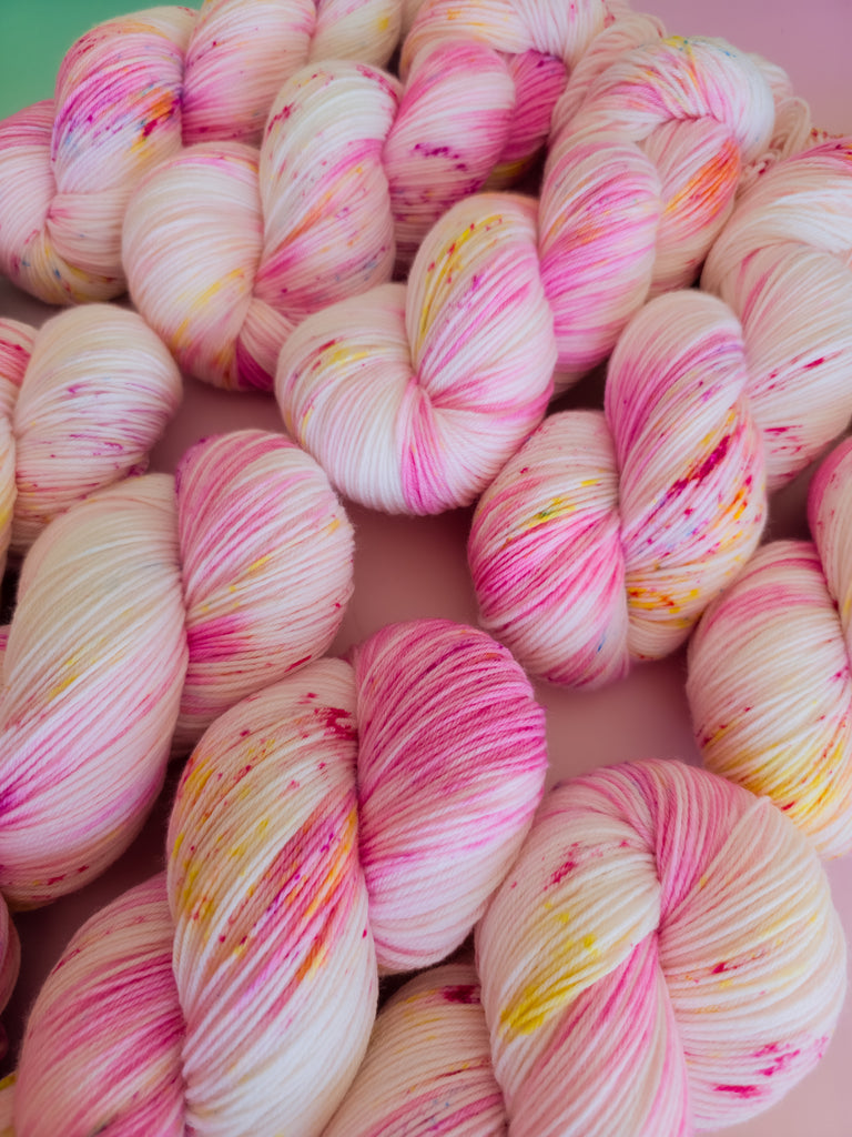 Inspired by Stardash’s playful confidence, this colourway mixes warm pinks with sunny undertones and lively speckles. Spirited and fun, it has a bright personality that shines through every stitch