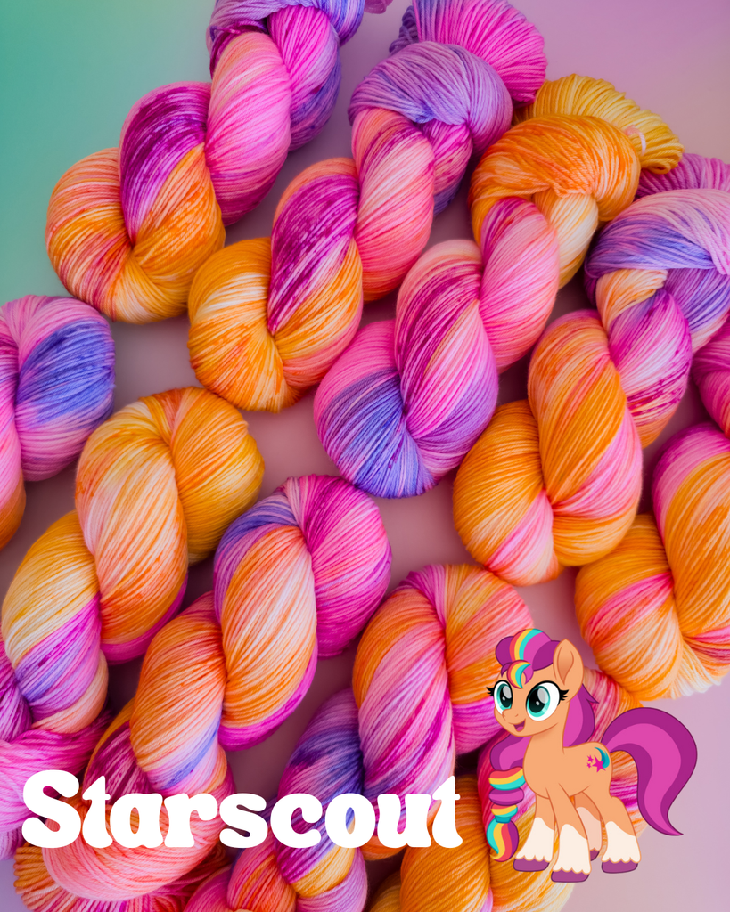 Inspired by Starscout’s adventurous and confident personality, this colourway swirls vibrant oranges, purples, and pinks together. Bold and energetic, it’s full of movement and excitement