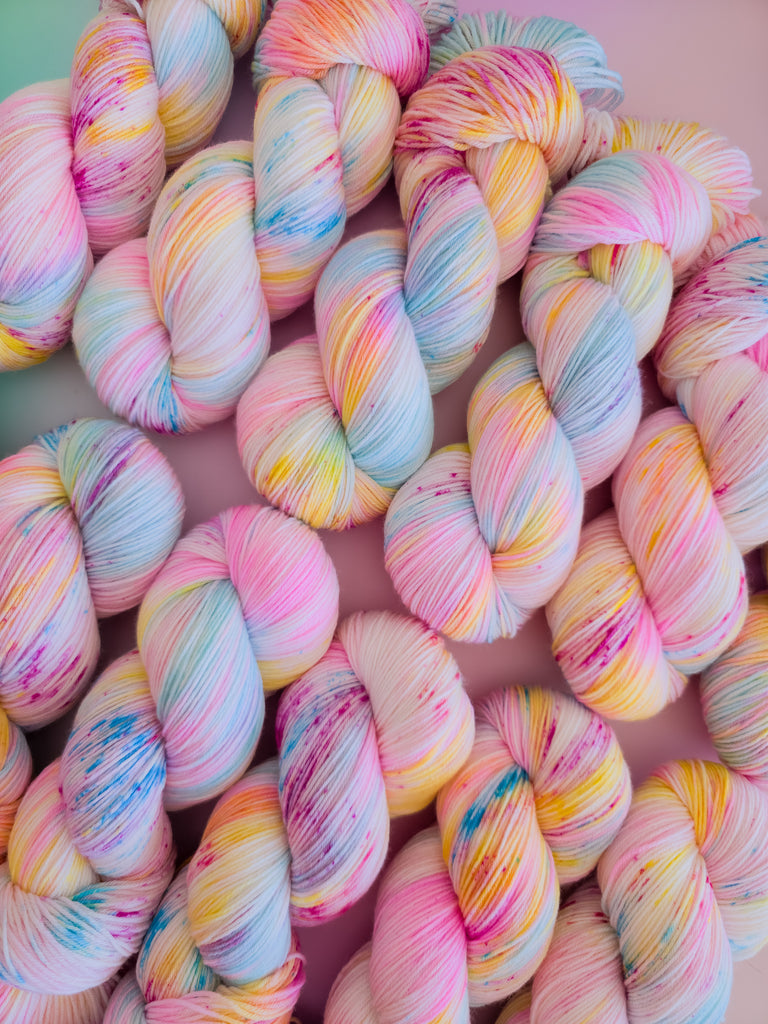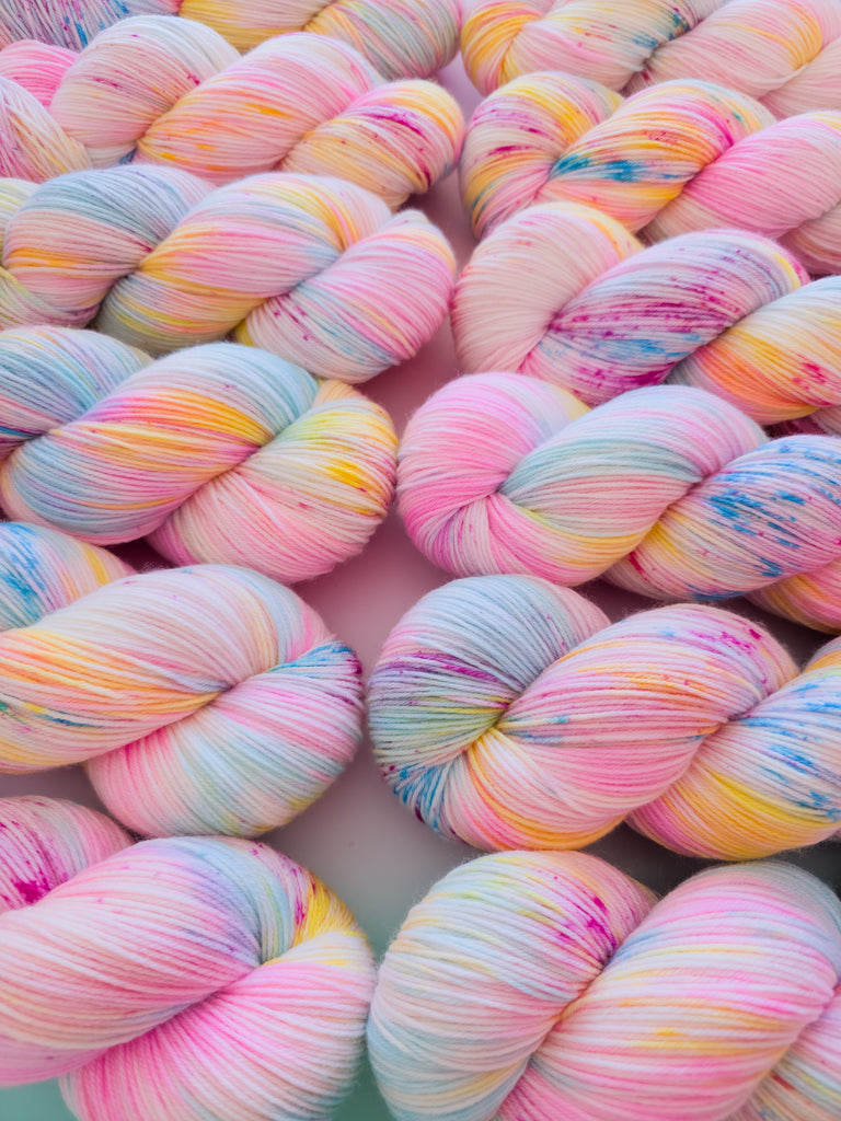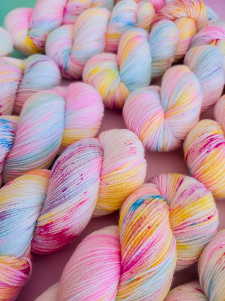 Inspired by Sweetie swirls kindness and youthful charm, this colourway blends soft pastel rainbows with a creamy feel. Sweet, gentle, and comforting, it’s perfect for cosy, feel-good projects