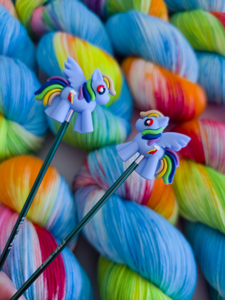 The Rainbow & Sprinkles Needle Stoppers are here to help keep your make safe! Slip 'em on the ends of your needles and rest easy knowing your stitches won't get away on you. Now you won't have to worry about finding the end of the needle every time you come back to your project. So grab a pair and get knitting!