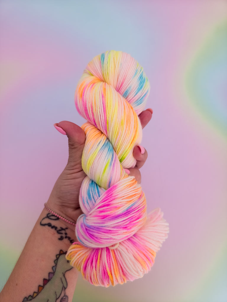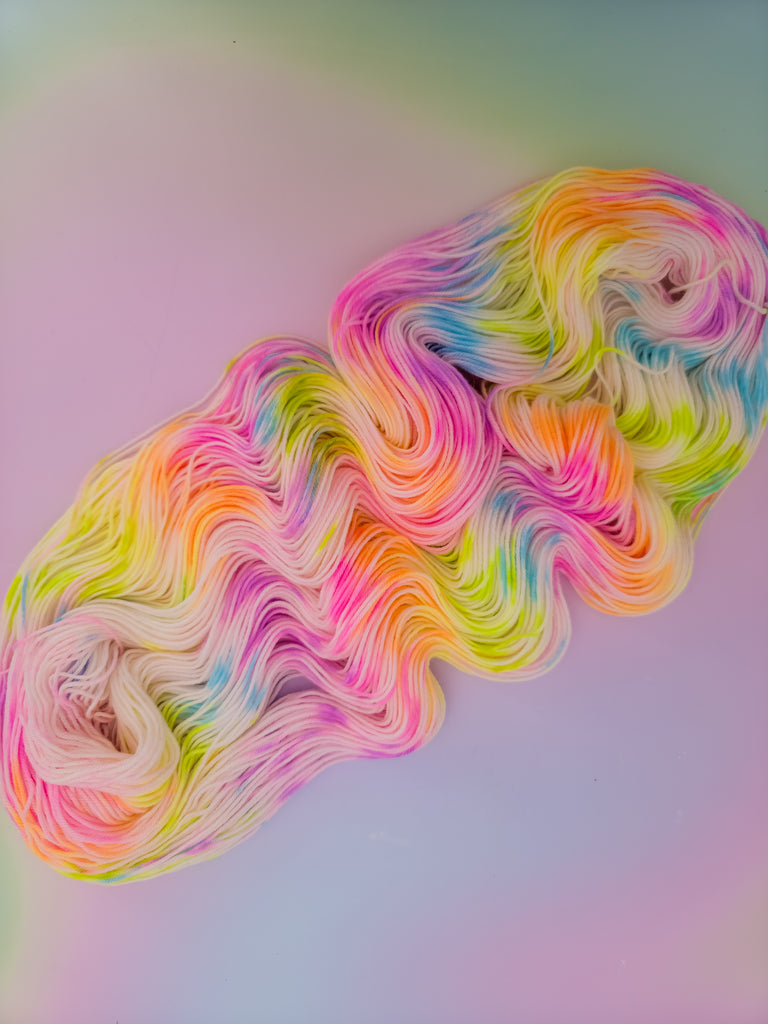 Because each batch is hand-dyed, there may be slight color variations between them. If you need multiple skeins for your knitting or crochet project, or a different base, just contact me and I'll make sure they all come from the same batch and/or are on the desired base. (Don't hesitate to reach out for batch-matching or base-changing needs!)