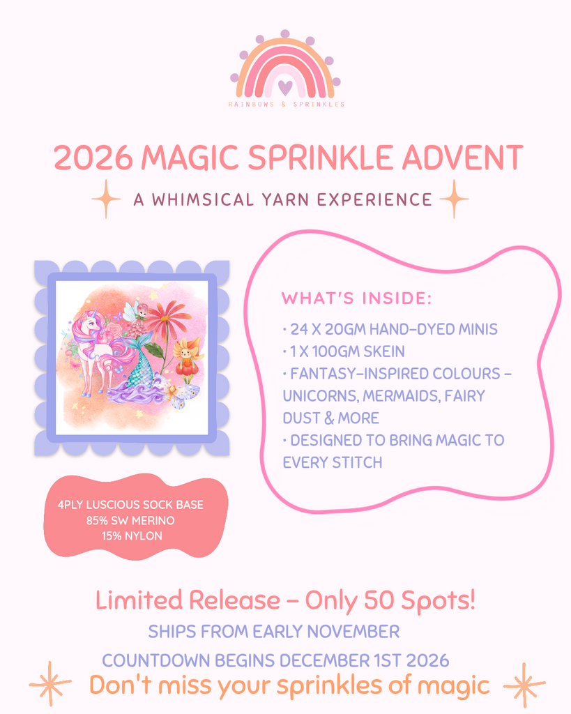 Step into a world where yarn and magic intertwine. Our 2026 Magic Sprinkle Advent Calendar is a celebration of everything whimsical—unicorn sparkles, fluttering fairies, shimmering mermaids, and all the enchanted colours in between.